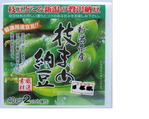 2015/10/12 新潟県産 枝まめ納豆! 枝豆どころ新潟の贅沢納豆 枝豆特有の芳ばしい香りとコクのある甘みをお楽しみ下さい。 のり塩付属 。 極大粒で柔らかく、歯ごたえしっとりにして中しっかり。 180円(税抜) tagPlaceholderカテゴリ: